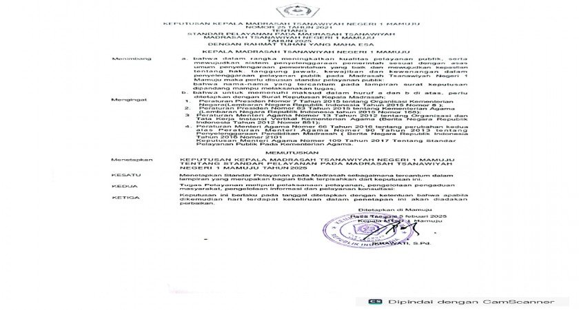 Standar pelayanan pada madrasah Tsanawiyah negeri 1 Mamuju